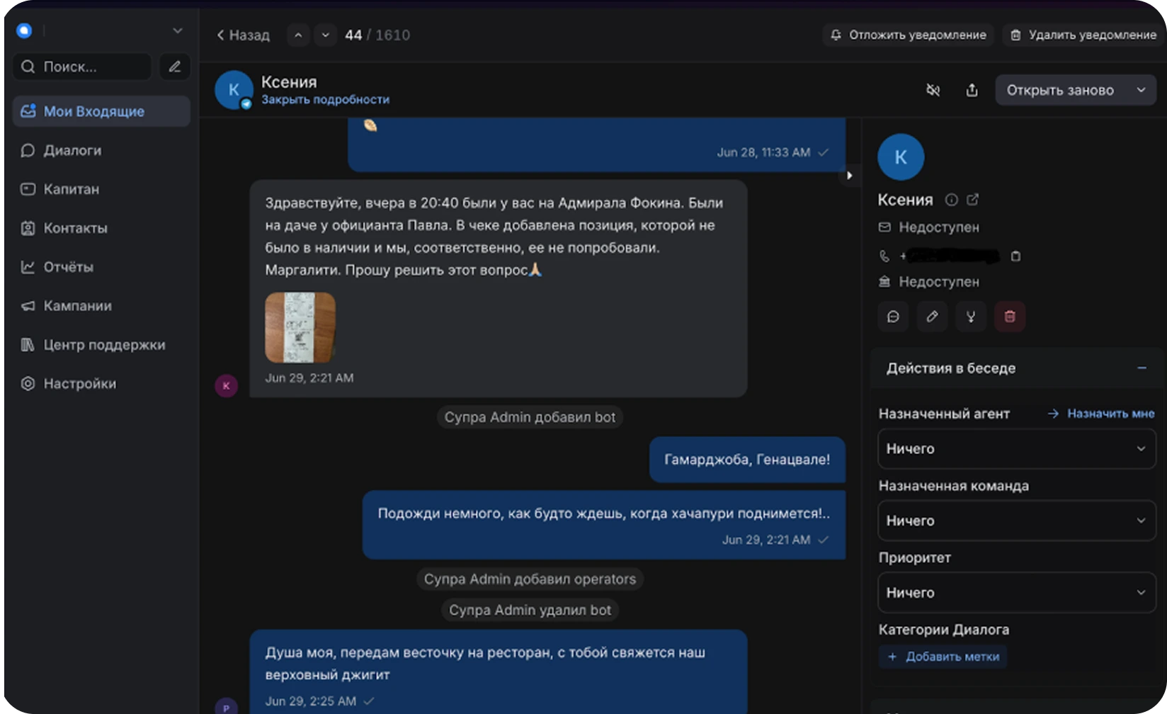 Дайте возможность вашим гостям быстро забронировать столик или сделать особый запрос, а команде — видеть всю историю общения